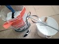 - Добившись нужной консистенции, останавливаем замес. Счищаем налипшие остатки смеси со стенок ведра шпателем или кистью. Повторяем замес.