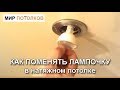 О том, как поменять лампочку в натяжном потолке, смотрите в следующем видео.